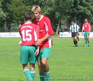 Gast im Westend-Stadion war am Sontagnachmittag bei schwülwarmem Wetter der berliner Verbandsligist BFC Preussen. Trotz der Hitze, spielten beide Mannschften schnell nach vorne, so das sich ein interessantes Spiel entwickeln konnte. In der 8.Minute wurde Christian Schlegel im Strafraum gestossen, den Elfmeter vergab jedoch Christian Rauch. Danach gab es schnelle Konter der Gäste, aber auch die Lankwitzer konnten ihre Angriffe nicht abschliessen. Ein Gegenzug brachte Christan Schlegel in aussichtsreiche Position, zwar verstolperte er den Ball zur Grundlinie, konnte ihn aber noch vors Tor Spielen, von wo Andreas Heyse ihn am Torwart vorbei brachte. Danach beruhigte Motor das Spiel etwas, die Gäste konnten sich allerdings trotzdem noch ein paar mal gefährlich in Szene setzen. Zur Pause wechselte Motor dann gleich 4x aus, wieder auf dem Feld stand nun auch Michel Jahn, der damit nach einem Dreivierteljahr wieder für Motor am Ball ist. Der Schiedsrichter, der im Spiel ohne Assistenten auskommen musste, übersah nach einem Freistoss für Preussen eine deutliche Abseitsstellung. So standen gleich 3 Mann vor Olaf Poszpieczny frei und hatten keine Mühe den Ausgleich zu erzielen. Nun ging das Spiel rauf und runter, alleine von den klaren Torchancen her, hätte das Spiel nun auch kippen können. So tauchten noch zweimal Gästestürmer alleine vor Olaf auf, der jedoch jeweils halten konnte. Auf der Gegenseite, hatte Rafet Ates per Kopf aus zwei Metern eine riesen Gelegenheit. Am Schluss hätte Michel Jahn seinen Einsatz noch mit dem Siegtor krönen können, allein vorm Tor schiterte er nur knapp am Preussen Keeper, der noch eine Hand an den Schuss bekam. Insgesamt eine ansehnliche Partie die mit einem gerechtn Ergebnis, bei der Hitze eine hohe Kraftanstrengung für die Spieler allemal. Wobei Christian Rauch, heute Kapitän, nun sein sechstes Spiel innerhalb von zwei Wochen über die volle Distanz ablieferte.