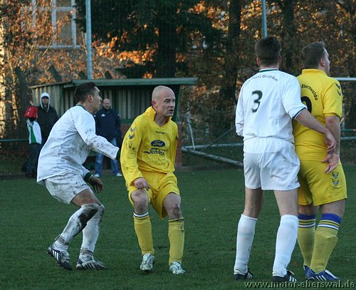 Borgsdorf war der bisher schwächste Gegner der sich gegen Motor II vorstellte und es gelang auch diesmal nicht zu punkten. Das Spiel von Beginn an zerfahren. Technische Fehler, Feehlpässe auf beiden Seiten. Sirko Neumann aus der Ersten Mannschaft und Michael Prost der wieder dabei war konnten sich mit Einzelaktionen etwas abheben, blieben aber auch glücklos. Die Gäste hatte zwei Kopfballchancen, vergaben aber beide nahe vor dem Tor. Ihre Beste Chance war jedoch ein Elfmeter. Resultierend aus einem Körperkontakt im Strafraum. Arm zwar angelegt, aber Aktion nur auf den Körper, Ball war lange weg. Der Borgsdorfer schiesst ganz schwach, so das Michael Mieseler parieren kann. Bei Borgsdorf danach noch mehr Unsicherheiten, das Niveau und Tempo der Partie bestenfalls Kreisnieveau. Motor moniert nach einer Aktion gegen Stefan Silz im Strafraum ebenfalls auf Strafstoss, bekommt ihn aber nicht. In der zweiten Halbzeit bekommen beide Teams außer Fernschüssen keine Aktionen vors Tor. Es Fehlt das Tempo und auch das mal ein Pass wenn schon , dann auch genau geschlagen wird. Borgsdorf nach Halbchancen leicht vorne aber auch ohne Durchschlagskraft. So zieht es sich bis in die 80.Minute, der ereignisreichsten des ganzen Spiels. Denn zunächst kann Michael Prost von Enrico Gleffe am Strafraum freigespielt werden. Von Halbrechts scheitert er aber aus fünf Metern am Torwart. Im direkten Gegenzug kontert Borgsdorf über links. Die hohe Flanke in den Strafraum wird von Torwart und Abwehrspieler unterlaufen. Ein mitgelaufener Borgsdorfer kann frei einschiessen. Die letzten Minuten zieht sich Borgsdorf dann zurück. Motor II kann gegen diese dichte Deckung nichts zu stande bringen, auch Einzelaktionen von Sirko Neumann bleiben hängen. Es bleibt nur die Erkenntnis das es wieder nicht gereicht hat, die Gäste feierten das sie die Blamage verhindert hatten. Denn das wäre ein Punktverlust für sie gewesen.