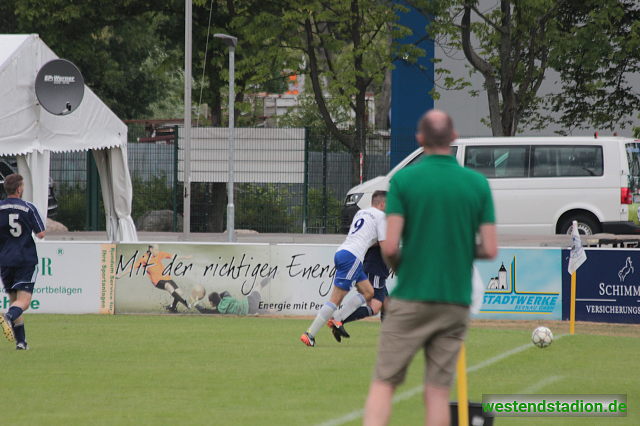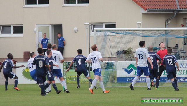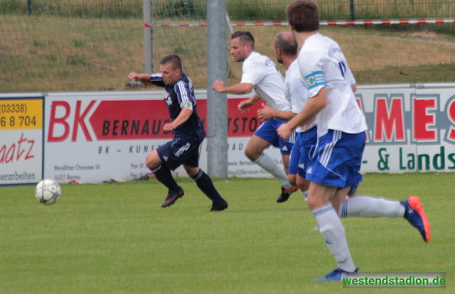 Denn Preussen zwei konnte nur mit 10 Spielern antreten und stand die gesamte erste Halbzeit tief und konzentrierte sich darauf den Gegner vom Tor fern zu halten. Bernau II, die auch die ein letztes aber wenigstens zahlenmäßig komplettes Aufgebot zusammengekratzt hatten rannten gut 40 Minuten ohne jeden Effekt gegen die Preussen Reserve an, welche sich für zwei gar nicht mal so ungefährliche Vorstöße befreien konnte. Erst kurz vor der Pause wurde durch zwei Volleyschüsse knapp übers Tor von Manuel Rauh noch einmal brenzlig. Das torlose Ergebnis zur Pause ein erster Erfolg. In der zweiten Hälfte wurde bei den Kontern jetzt konsequenter nachgerückt und auch der Bernauer Reserve merkte man an das einige Spieler bereits deutlich pumpten und oft nicht richtig hinterher kamen. Felix Kasch zog den Konter zehn Minuten nach der Halbzeit an und legte Kenny Ladewig auf der zentral aus zehn Metern traf. Bernau machte danach Druck und schnürte die unterzähligen Preussen weiter ein, hatte aber kaum zwingende Abschlüsse. Ein weiterer Konter über Kenny Ladewig endete mit einem Foul drei Meter vor dem Strafraum und Felix Kasch gelang mit einem schön über die Mauer geschlenzten Freistoss der zweite Treffer. In der restlichen Spielzeit versuchte es Bernau II immer wieder mit hohen Flanken und holte einen Eckball nach dem anderen heraus, aber sowohl per Kopf als auch per Fernschuss ging alles drüber oder daneben. Zum Schluss fehlte einfach jegliches Tempo um am Ergebnis noch was zu drehen. Preussen II verabschiedet sich also auf einem Nichtabstiegsplatz aus der Liga, wobei die Zukunft der Truppe an sich völlig unklar ist. Nicht nur das das Timing des Rückzugs völlig daneben ist, die angekündigten Abgänge kommen an sich schon einer Auflösung des einstigen Gründungsmitglieds der Landesliga gleich, der man 10 Jahre angehört hatte. Aber selbst die Fusion mit Marienwerder hatte ja schon gezeigt das Reservetruppen in anspruchsvolleren Ligen einfach nicht zu unterhalten sind, keine eigentlich Eberswalder Herausforderung.