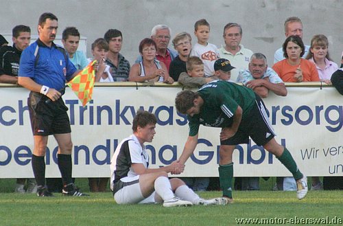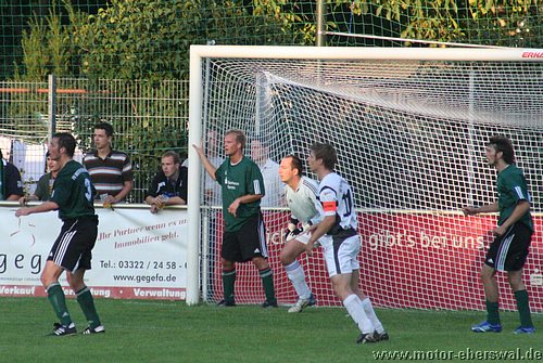 Kurzfristig musste Motor zunächst in Falkensee auch noch auf Johannes Persecke verzichten, für ihn reichte es nach einer Erkrankung in dieser Woche nur für 15 Minuten Einsatz. So spielte man in der kompletten Offensive in einer Formation, die so bisher noch nicht aufstellt worden war. Dafür lief das Spiel zunächst sehr flott und man merkte bald, das Falkensee zwar die aktivere von beiden Mannschaften war, aber aus dem Spiel heraus auch nur zu wenigen klaren Gelegenheiten kam. Motor verteidigte in den ersten 20 Minuten sehr konsequent und überstand die erste Druckphase der Hausherren. Konter wurden aber auch nur sporadisch gefahren und endeten relativ harmlos in Strafraumnähe. Die größte Gefahr ging auf beiden Seiten von Freitößen aus, die von der Strafraumgrenze getreten wurden. Jedoch zielte man hier auch auf beiden Seiten herzlich ungenau. In der zweiten Hälfte zog sich Motor weiter zurück und Finkenkrug schlug reihenweise hohe Flanken in den Strafraum. Diese konnten jedoch von Kristian Stelse und Mirko Rücker ausnahmlos abgeräumte werden. Wenn Motor selbst an den Ball kam, fehlte dem Umkehrspiel aber eindeutig die Präszision. Daramatisch wurde das, an Tempo zusehends nachlassende Spiel erst in der Schlussphase. Zunächst wurde eine Flanke, bei der Swen Lichtenberg den gefangenen Ball fallen lies kreuzgefährlich. Doch den Schuss aus nächster Tornähe lenkte der Motor Keeper zur Ecke. Unverhofft bekam Motor dann selbst die Gelegenheit das Spiel für sich zu entscheiden als Christian Schlegel beim einzigen wirklich ausgespielten Konter der zweiten Halbzeit alleine aufs Tor zulief, den Ball aber am kurzen Torecke vorbei schob. In der 86.Minute kam die Entscheidung so auf der anderen Seite. Mathias Manteufel stoppte seinen Gegenspieler auf der Strafraumgrenze mit einem Foul, so das es Strafstoss gab. Den Elfer verwandelte der Schütze zunächst, musste dies jedoch wiederholen, da der Ball vor dem Punkt gelegen hatte. Jedoch auch diesmal traf er sicher. In den letzten Minuten eilte Swen Lichtenberg noch in den Strafraum der Gastgeber, jedoch auch eine Eckballstaffette brachte keine zwingende Torchance zum Ausgleich mehr ein.