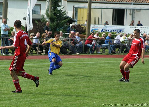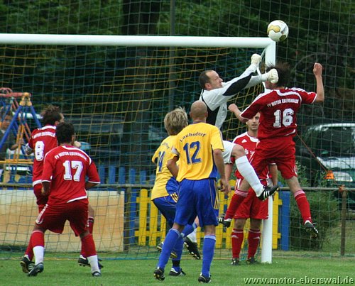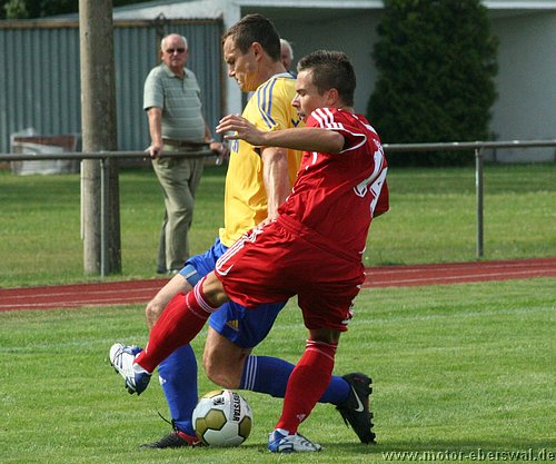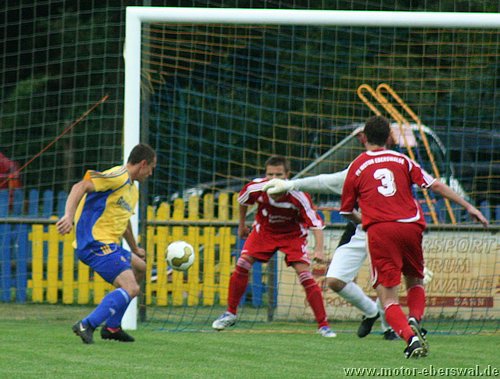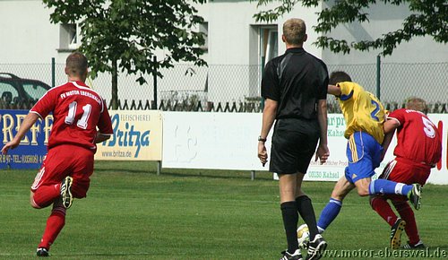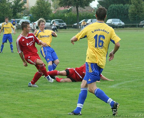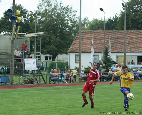 Mit einer ordentlichen Abwehrleistung und Konterspiel sichert sich Motor einen Sieg bei den als Favorit gehandelten Laubsdorfern. Am Spiel beginn Motor mit gutem Spiel nach vorne und einer ersten Torchance, die aber José Hornemann von der Strafraumgrenze links neben das Tor verzog. Danach übernahm Laubsdorf das Spiel weitgehend und machte Druck, kam aber nur selten wirklich an das Tor von Swen Lichtenberg heran. Viele Flanken wurden geklärt und Schüsse abgeblockt, zwei gute Möglichkeiten vergaben die Hausherren kläglich im Abschluss. Motor mit Kontervorstößen immer wieder gefährlich. Christian Schlegel und Sirko Neumann kamen dabei ebenfalls nicht zu zwingenden Chancen. Mehr Glück hatte José Hornemann, der im zweiten Versuch einen Ball halbhoch aufs Tor schlug und dieser von zwei Laubsdorfer verteidigern unhaltbar abgefälscht wurde als er sich ins Tor senkte. Laubsdorf, die zuvor in der Abwehr sehr ballsicher waren, wurden nun nervös und Motor hatte durch Rico Musick und André Germer noch vor der Pause zwei Gelegenheiten zu erhöhen. Laubsdorf nur bei Standards vor dem Tor. Ein Kopfball von Kubik strich knapp neben das Gehäuse und ein Freistoss ging knapp drüber. In der zweiten Halbzeit Laubsdorf wieder mit mehr Ballbesitz, in der Offensive aber zunehmend kopflos und mit langen hohen Bällen in den Strafraum, die von Kristian Stelse und Mirko Rücker geklärt werden konnten. Swen Lichtenberg wurde zweimal aus dem Gewühl an der Strafraumgrenze heraus zu starken Paraden gezwungen, die Abwehr räumte ansonsten weiter konsequent ab. Entlastung brachten immer wieder Konter die schnell eingeleitet wurden. So standen sowohl Sirko Neumann, José Hornemann als auch Christian Schlegel frei vor dem Tor, ihr Abschluss aber jeweils nicht platziert genug. Sirko Neumann hatte die größte Chance mit einem Heber aus 20 Metern, den der zu weit vor dem Kasten stehende Keeper Thoms mit den Fingerspitzen über die Querlatte lenken konnte. Die letzten zehn Minuten dann ein starkes Anrennen der Lausitzer, die außerdem zahlreiche Freistösse und Ecken herausholten, diese aber durch unplatzierte Ausführung vergaben. Motor nach einem Sololauf von Rico Musick mit einer Ecke, wobei der eingewechselte Ümit Ergin Zentimenter übers Tor köpfte. So wurde die Nachspielzeit bei dem knappen Vorsprung noch dramtisch. Gleich 3 Laubsdorfer stützten sich unmittelbar vor der Torlinie auf einen abgeprallten Ball. Im Gewühl Zentimeter vor der Linie blieb der Motor Keeper Sieger, obwohl im Feld die Laubsdorfer Spieler schon die Arme zum Jubel hochgerissen hatten. Das blieb dann Sekunden später den Eberswaldern vorbehalten, die mit sechs Punkten einen maximal guten Start in die Saison hingelegt haben.