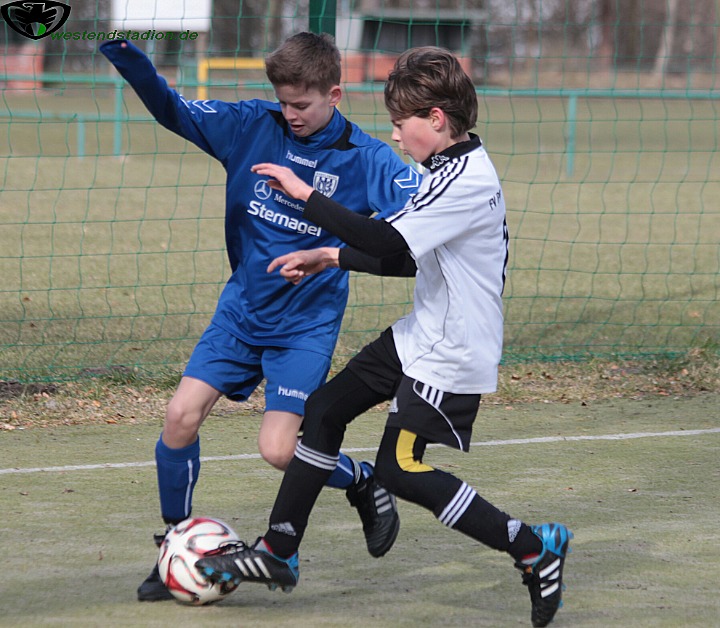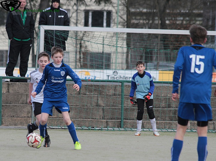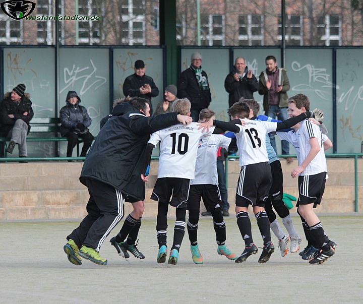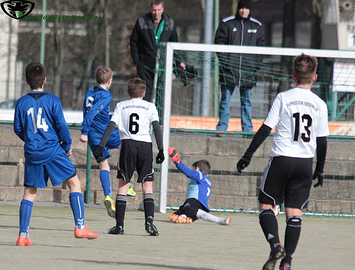 Die in ihrer Staffel ungeschlagenen Babelsberger versuchten durch Kurzpassspiel zu dominieren und drückten die Eberswalder zeitweise hinten rein. Aber in ihrer Chancenverwertung waren sie nicht zwingend. Anders die Preussen , die mit einem abgefälschten Freistoss zentral aus dem Halbfeld in Führung gingen. Danach wurde der Gegner sichtlich nervös und bei Kontern anfällig. Diese spielte Eberswalder eiskalt aus und lag noch vor der Pause mit 3-0 vorne. Die Vorentscheidung schien gleich zu Beginn der zweiten Hälfte gefallen zu sein, denn nach dem Anschlusstreffer durch einen Neunmeter , antworteten die Eberswalder postwendend mit dem vierten Treffer. Allerdings waren nun die Eberswalder taktisch nicht clever genug und liessen sich von den körperlich stärkeren Babelsbergern hinten rein drücken. So kamen diese innerhalb von zwei Minuten auf 4-3 heran. Glück hatte Eberswalde dann beim fünften Treffer, denn der Babelsberger setzte zu einem Befreiungsschlag an und der Eberswalder hielt einfach nur den Fus dagegen. Der Ball ging so buchstäblich nach hinten los und überraschte auch den eigenen Keeper. Dennoch machte Babelsberg 7 Minuten vor Schluss wieder den Anschlusstreffer, diesmal stand Eberswalde aber gut hinten drin und sorgte mit Kontern für Entlastung so das bis zum Schluss nichts anbrannte und man ins Viertelfinale einzog.